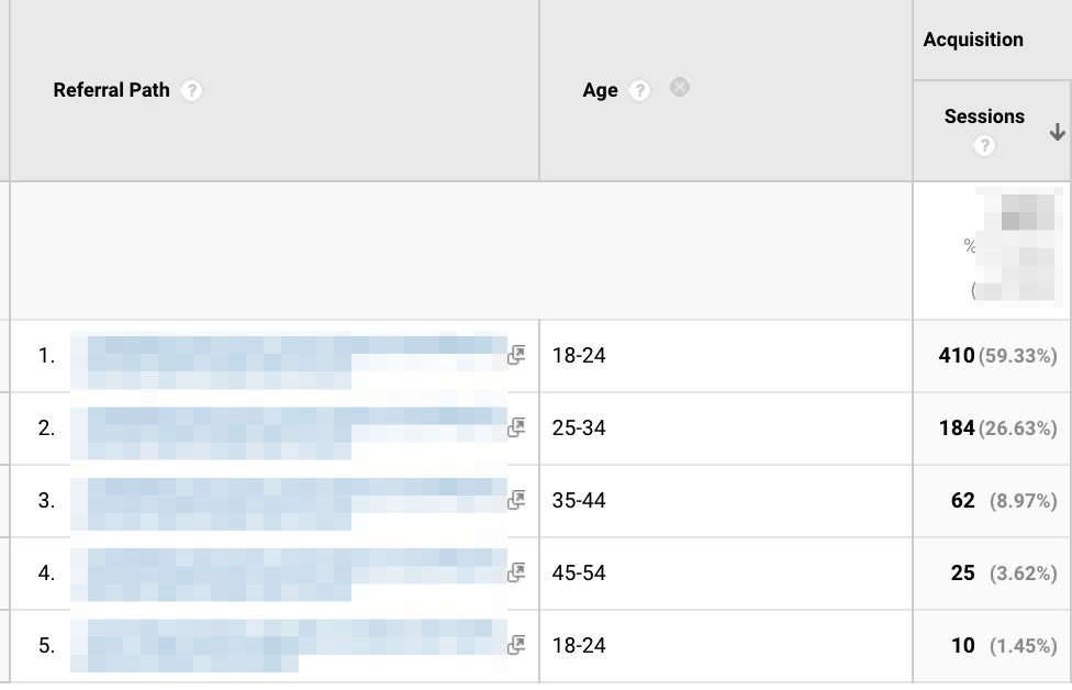 Imagine your referral traffic from Facebook has increased lately and you want to see what age range users are within to see if it matches your campaign targets.