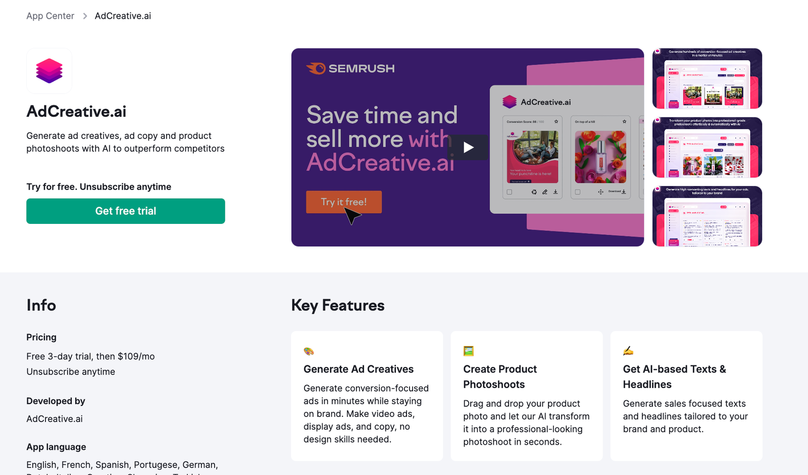 We’ve gone into the theory, now let’s look at how you can put it into practice with AdCreative.ai - a new addition to the Semrush App Center, designed to create digital advertisements for any platform in seconds.